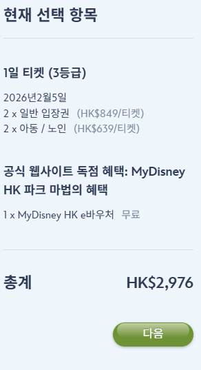 이로써, 홍콩 디즈니랜드 하루 예매가 끝났습니다.