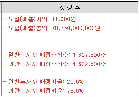 💡 확정 공모가는 11,000원으로 확정되었습니다!